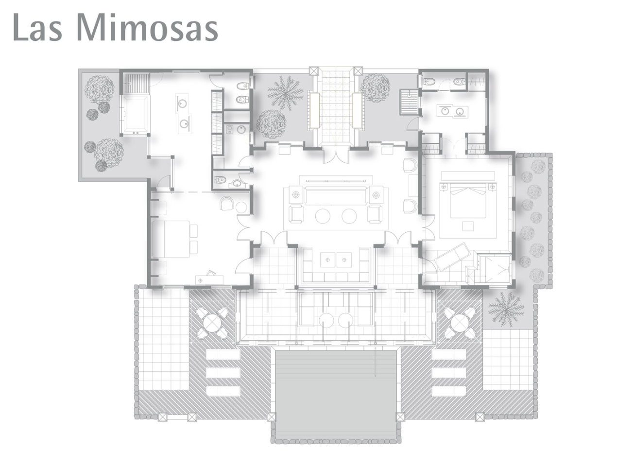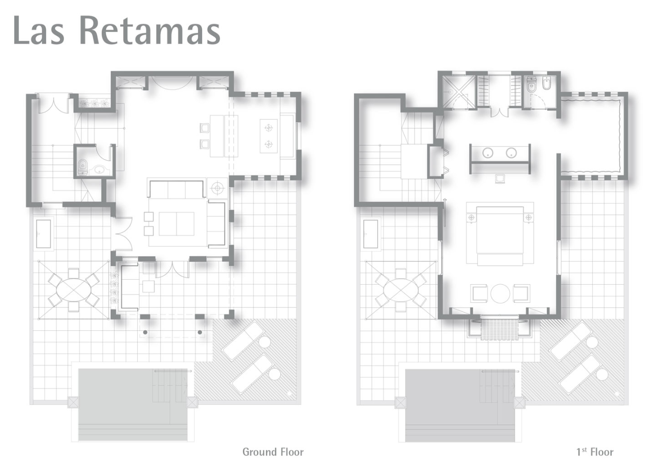 Двухэтажная вилла, эти виллы также были декорированы Паскуа Ортегой. Спальня с двуспальной кроватью king-size с балдахином, отдельная гостиная комната с диваном и барной стойкай, ванная комната, отделанная базальтовым камнем с ванной и мансардовым окном, гостевой туалет, небольшой балкон, терраса (размер: 91-101 м²), с зоной отдыха и обеденным столом, сад (площадью от 12 до 71 м²), персональный бассейн infinity (12 м²), услуги дворецкого, меню ароматов в ванне, континентальный завтрак на вилле с 08:00 до 12:00, египетские хлопковые простыни, план номера;