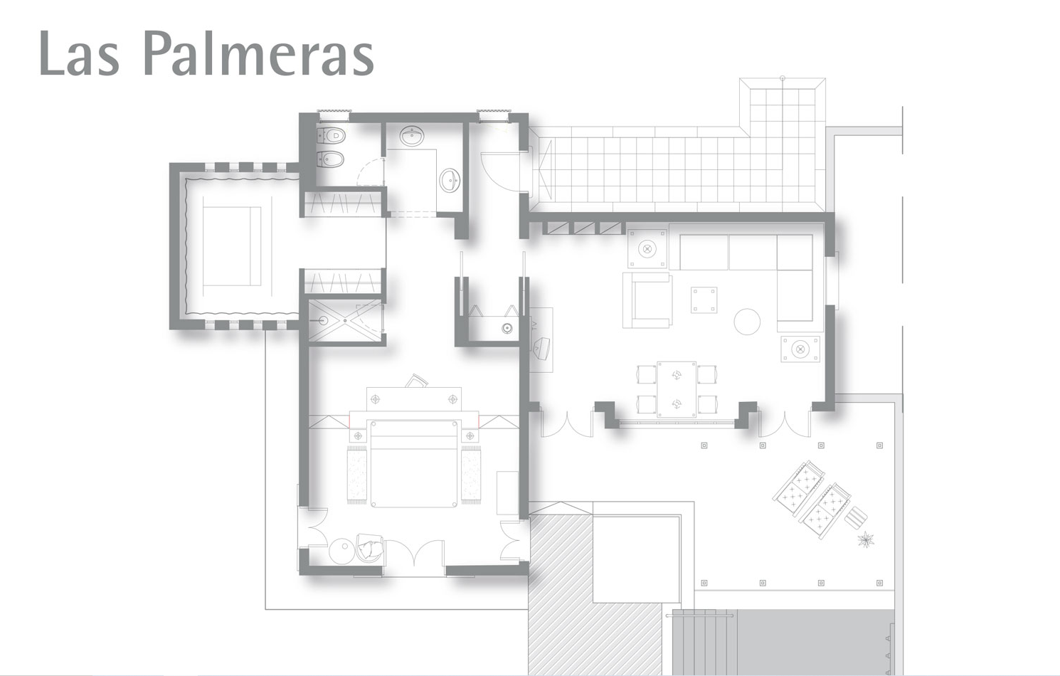 2 спальни, отдельная гостиная комната с диванами, 2 ванные комнаты, гостевой туалет, большие окна, терраса с зоной отдыха (размер террасы от 144 до 160 м²), обеденным столом и персональным бассейном с подогревом (размер бассейна от 24 до 37 м²), сад (площадью от 54 до 122 м²), услуги дворецкого, меню ароматов в ванне, континентальный завтрак на вилле с 08:00 до 12:00, простыни из египетского хлопка, оригинальные марокканские ковры, дизайнерские предметы мебели разработаны эксклюзивно Паскуа Ортегой. Также оснащены полной системой домашней автоматизации для идеального управления освещением, шторами, план номера.