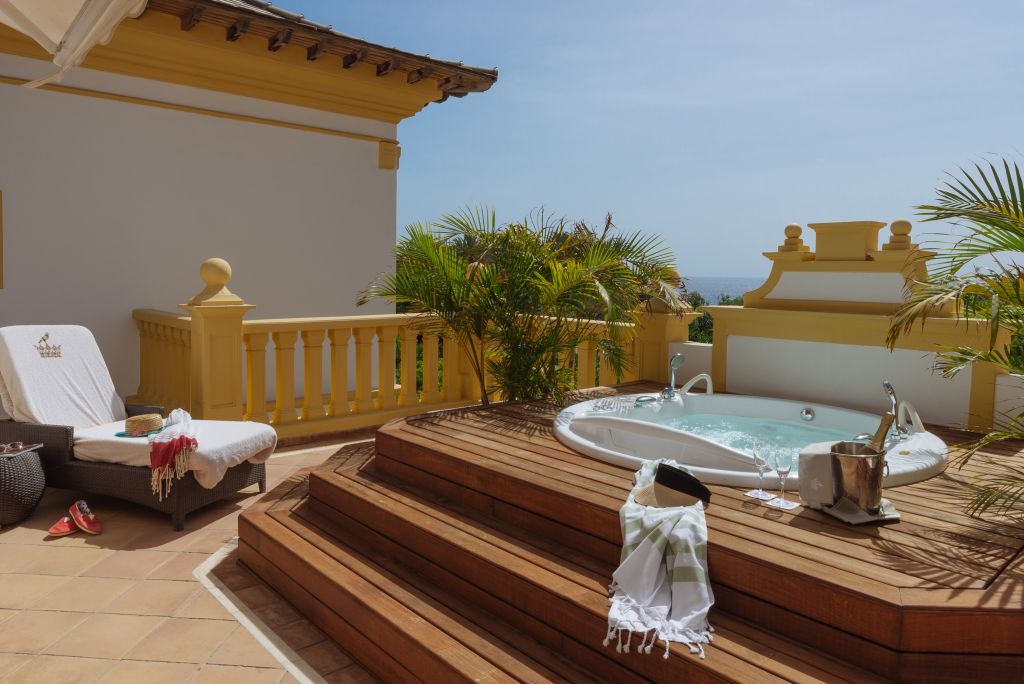 2 спальни, гостиная, 2 ванные комнаты, терраса, джакузи на терраса, панорамный вид на море и сады, услуги дворецкого.