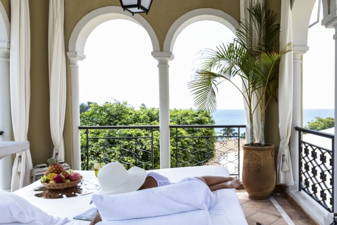 В здании Villa Flora, оформлен в стиле колониальной эпохи, 2 спальни, 2 ванные комнаты, отдельная гостиная комната с диваном и обеденным столом, терраса, джакузи на террасе, вид на океан;