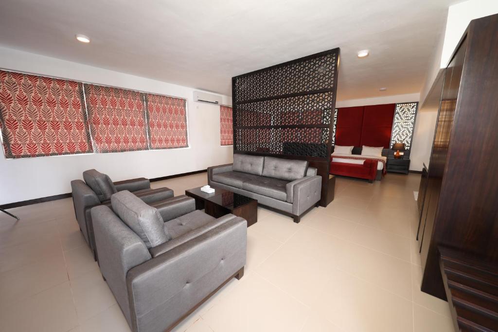 В номерах: Wi-Fi, халаты, тапочки, набор для приготовления чая/кофе, телевизор, сейф, мини-бар, потолочный вентилятор, банные принадлежности, кондиционер.