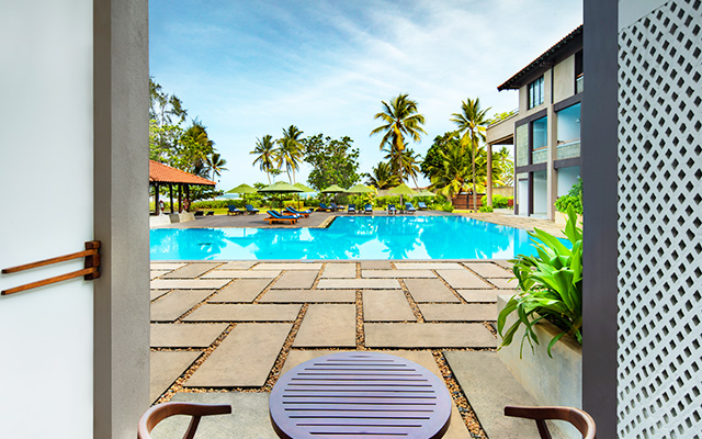 Расположены в отдельном крыле здания Deluxe Ocean Wing на первом этаже, двуспальная кровать king-size или 2 односпальные кровати, гостиная зона с диваном-софа, ванная комната с ванной и душем, терраса, вид на бассейн, прямой выход к эксклюзивному бассейну на территории Deluxe Ocean Wing;