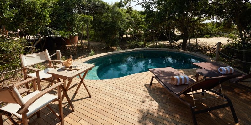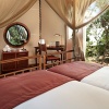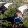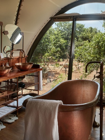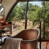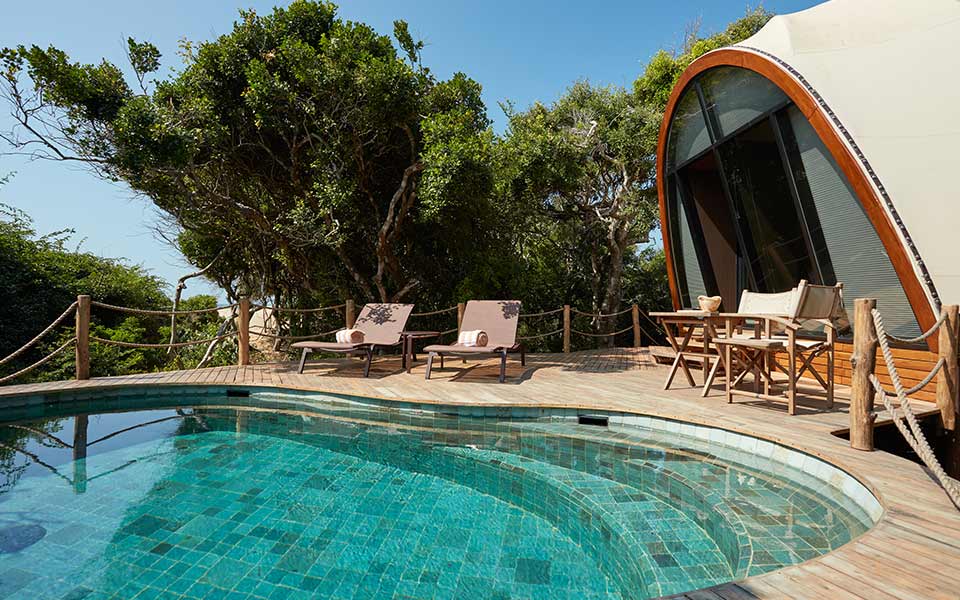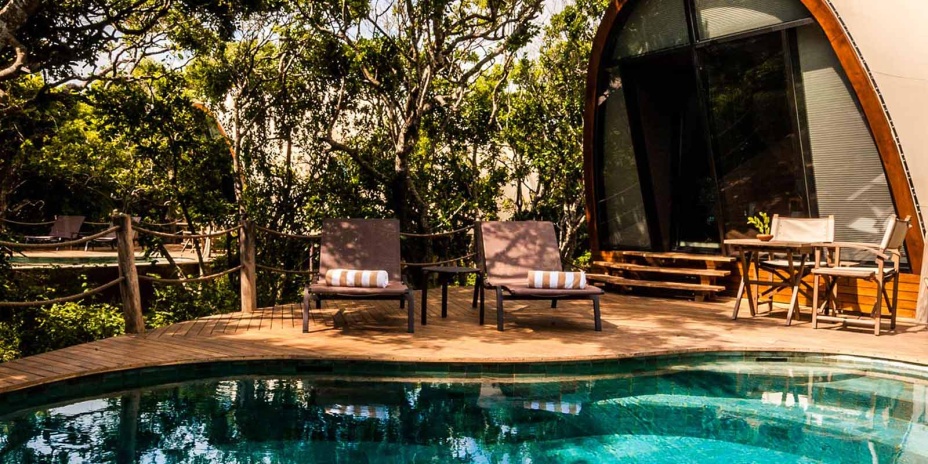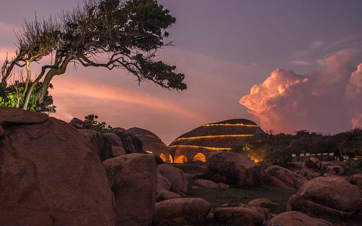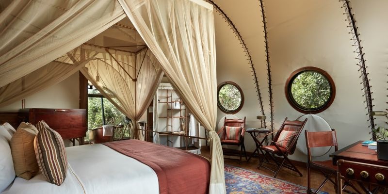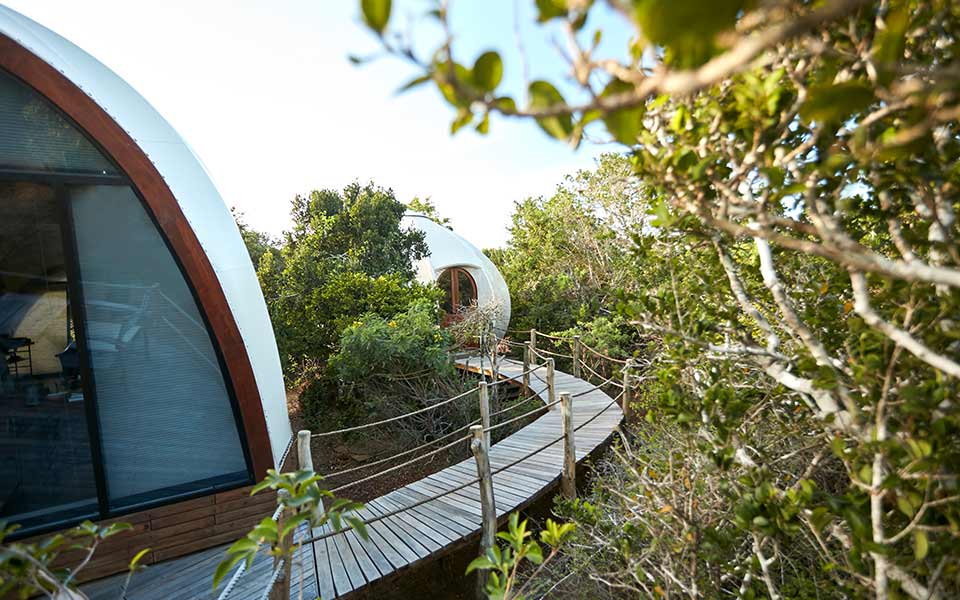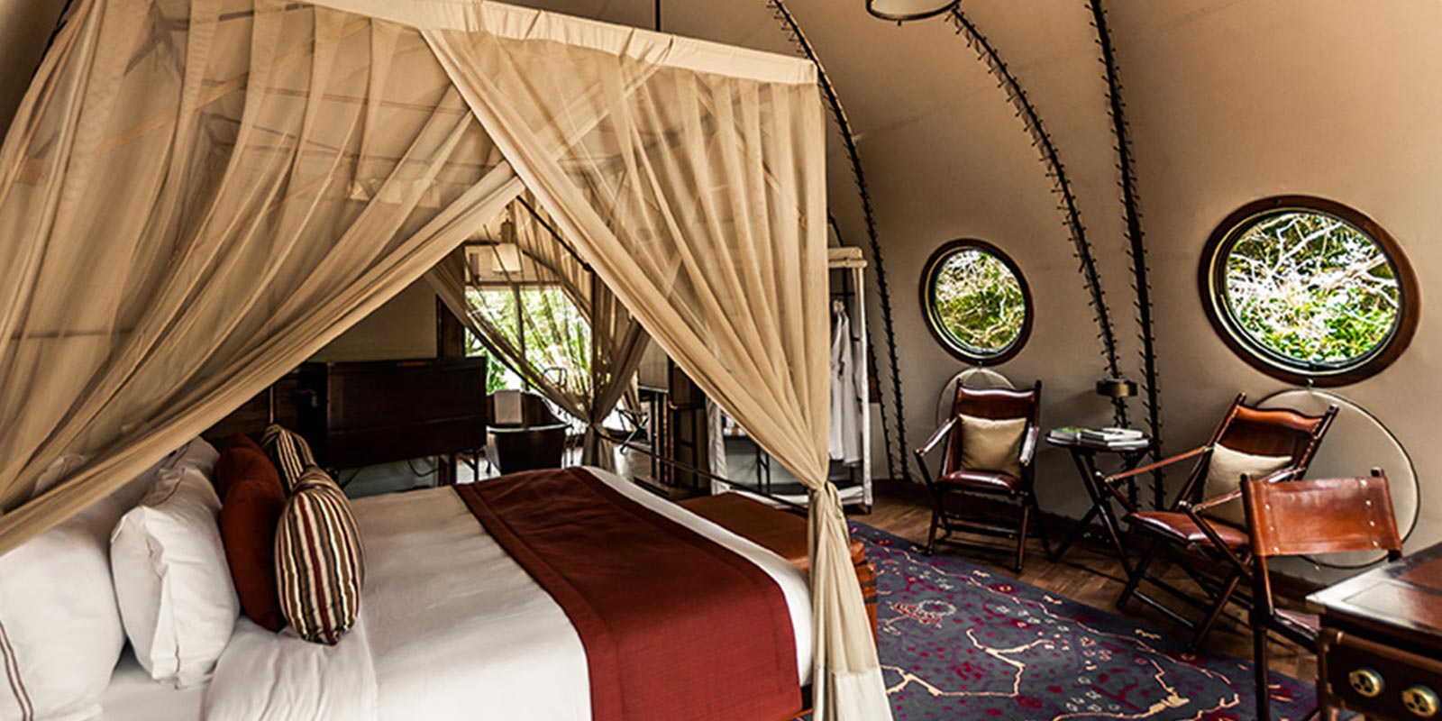 Главные здания отеля выполнены из бамбука, а шатры уникальной формы, названные Cocoon и Urchin (Коконы и Морские ежи), представляют собой номера под тентовым полотном, предлагающие самые современные удобства, включая кондиционер.