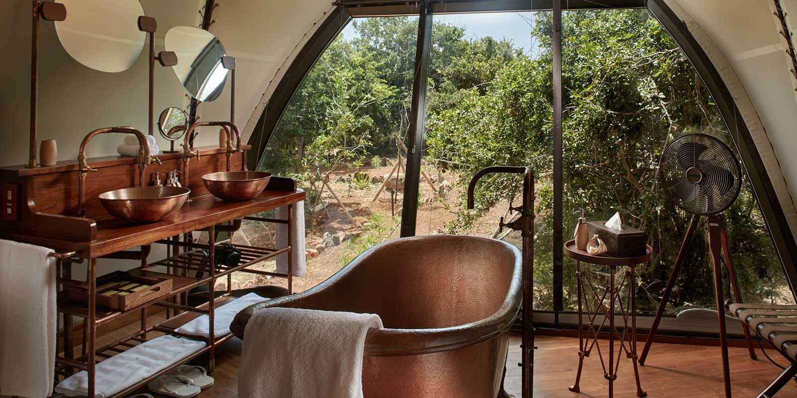 Wild Coast Tented Lodge построен рядом с известным национальным парком Яла, знаменитым своей большой популяцией леопардов. Уникальный дизайн Wild Coast Tented Lodge, созданный голландскими, английскими и ланкийскими дизайнерами, представляет собой искусственные конструкции, органично вписывающиеся в окружающий ландшафт благодаря использованию тщательно отобранных натуральных материалов.