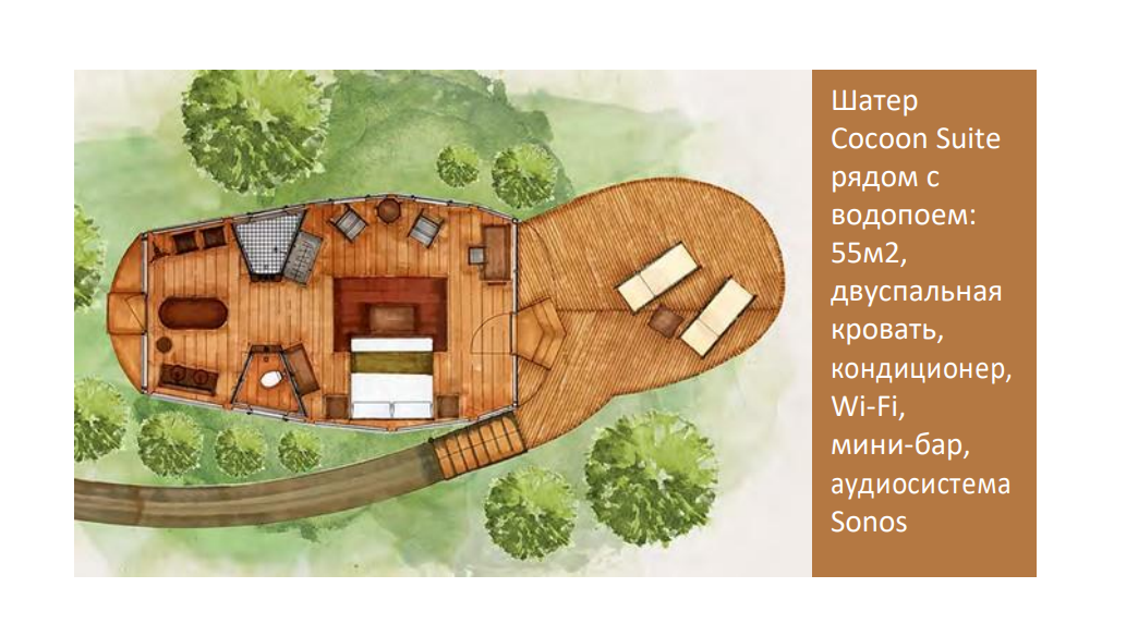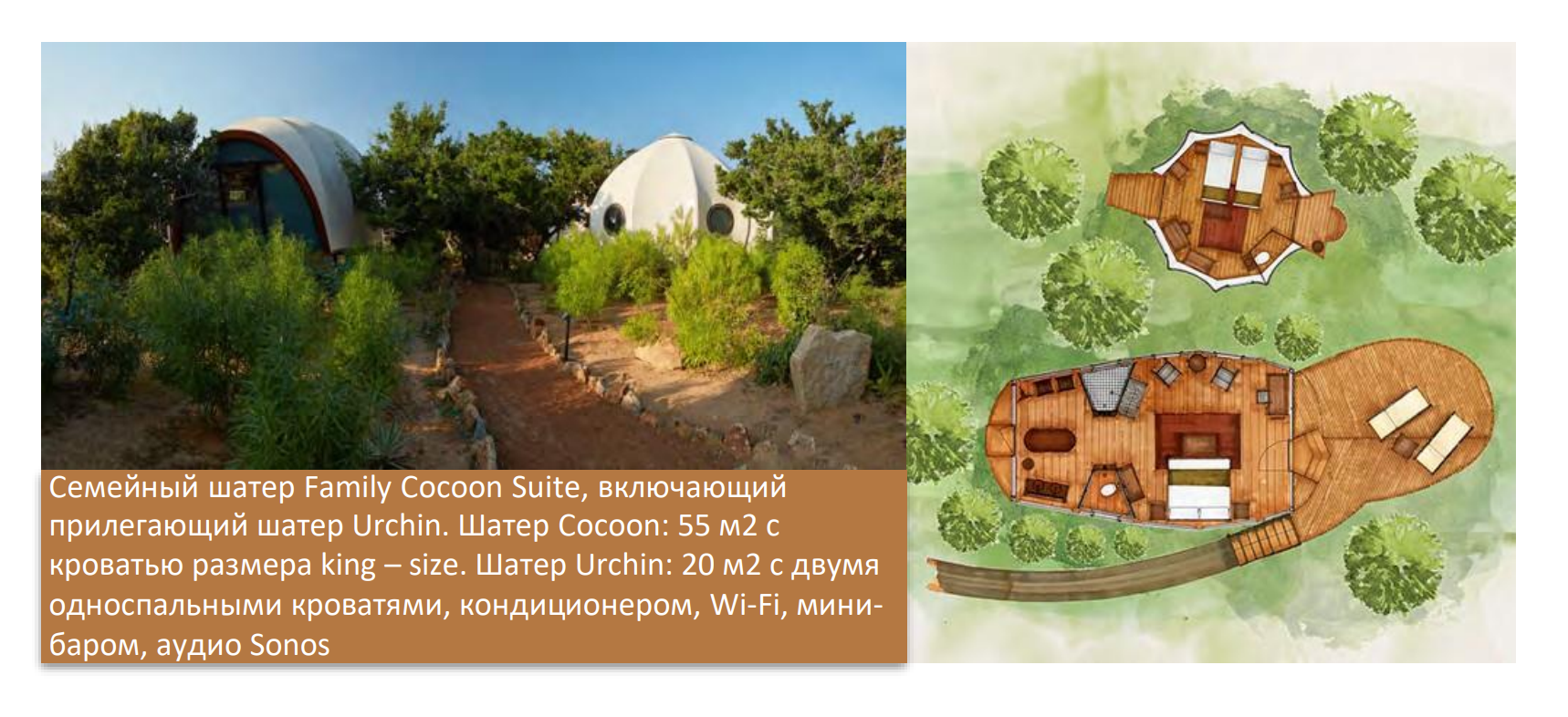 Есть 2 шатра Cocoon для гостей с ограниченными физическими возможностями.
