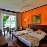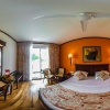 Просторные и светлые номера располагают гостиным уголком, телевизором со спутниковыми каналами, а также балконом, с которого открывается вид на сад и океан.