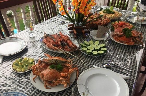 Ресторан на открытом воздухе. Гости могут заказать обед или ужин в номер. Морепродукты и местная кухня.