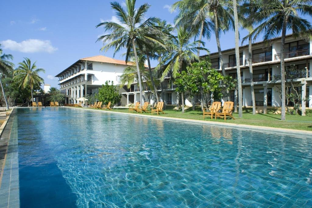 Отель Jetwing Beach расположен среди пальм, рядом – прекрасный песчаный пляж. Территория отеля занимает 2,5 гектара, а его дизайн был разработан известным архитектором Джеффри Бава.