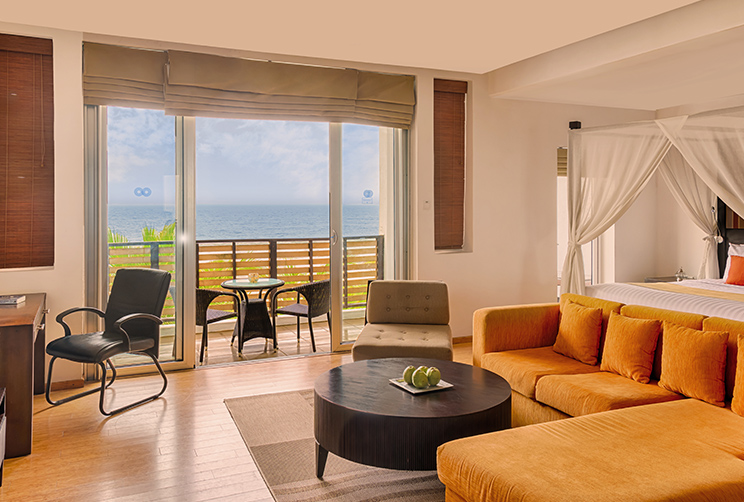 Из просторных номеров открывается вид на море.