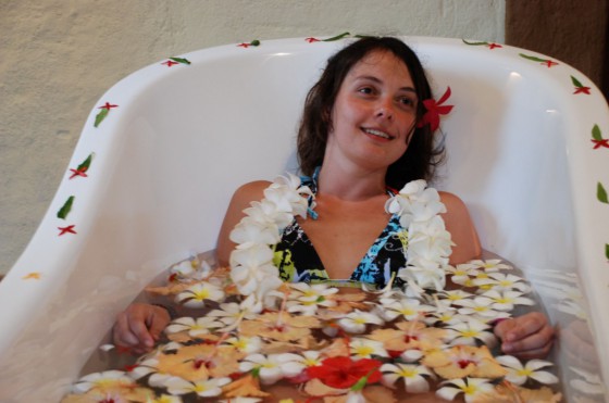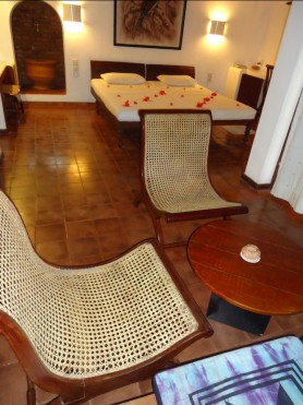 26 Standard Sea View Bungalows – гостиная, хорошо проветриваемая ванная комната с солнечным подогревом воды. Интерьер содержит терракотовые оттенки, мебель ручной работы и антикварные детали