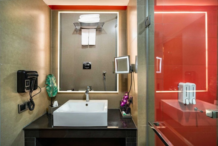 В номерах: Wi-Fi, кондиционер, мини-бар, телевизор, сейф, чайник, бутилированная питьевая вода, набор для приготовления чая/кофе, фен, зеркало для макияжа.