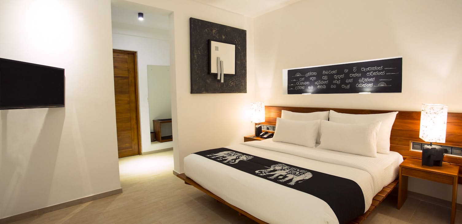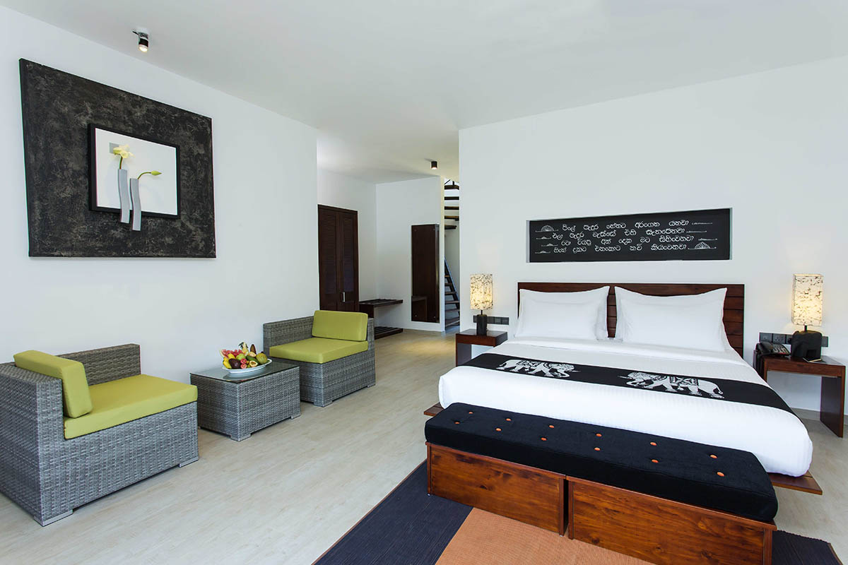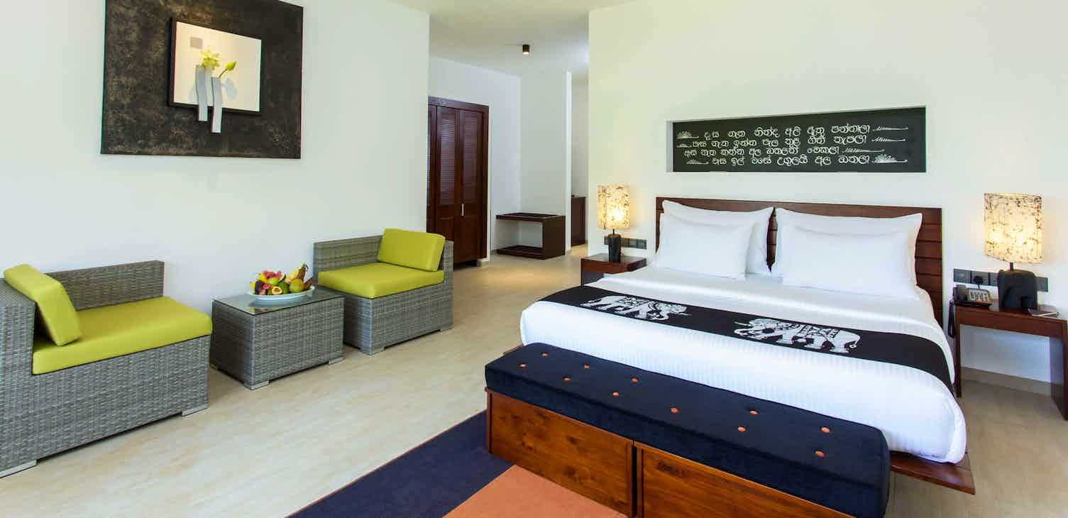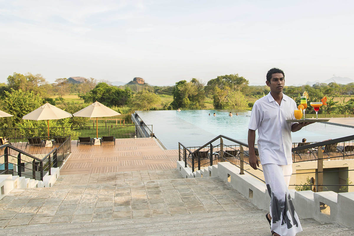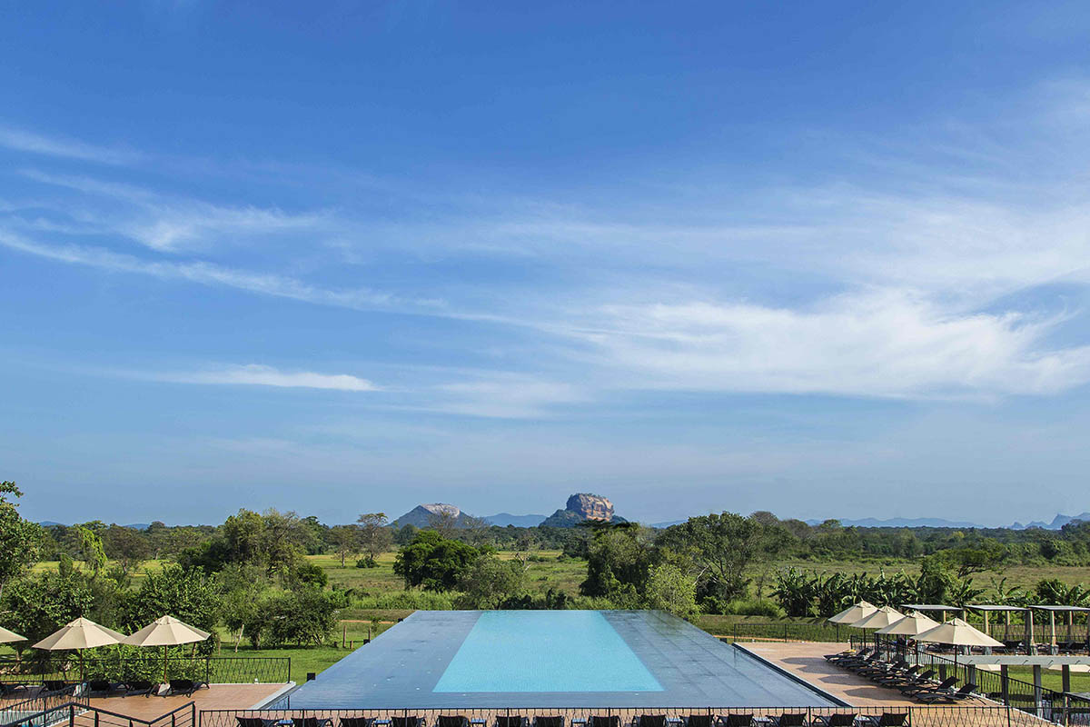 Отель Aliya Resort & Spa с видом на скалу Сигирия расположен в окружении тропического леса.
