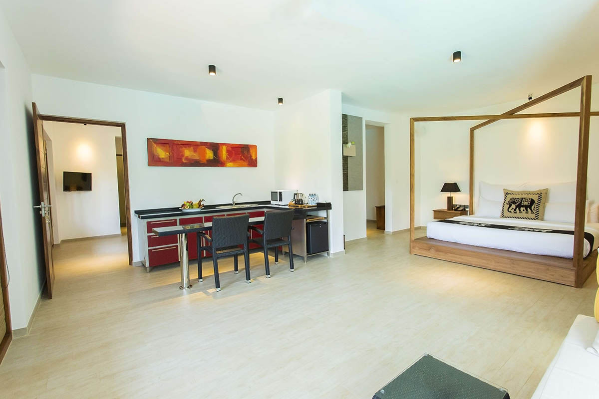 Для размещения гостям предлагаются современные номера или деревянные шале, где всё создано для максимального комфорта, или номера-сьют с персональным бассейном. К услугам гостей – открытый бассейн infinity, аюрведический спа-центр, тренажёрный зал, 4 ресторана, а также возможность совершить пешие или велосипедные прогулки с гидом.