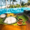 К услугам гостей открытый бассейн и аюрведический спа-центр, ресторан и бар. Номера оформлены в загородном стиле и обставлены деревянной мебелью.