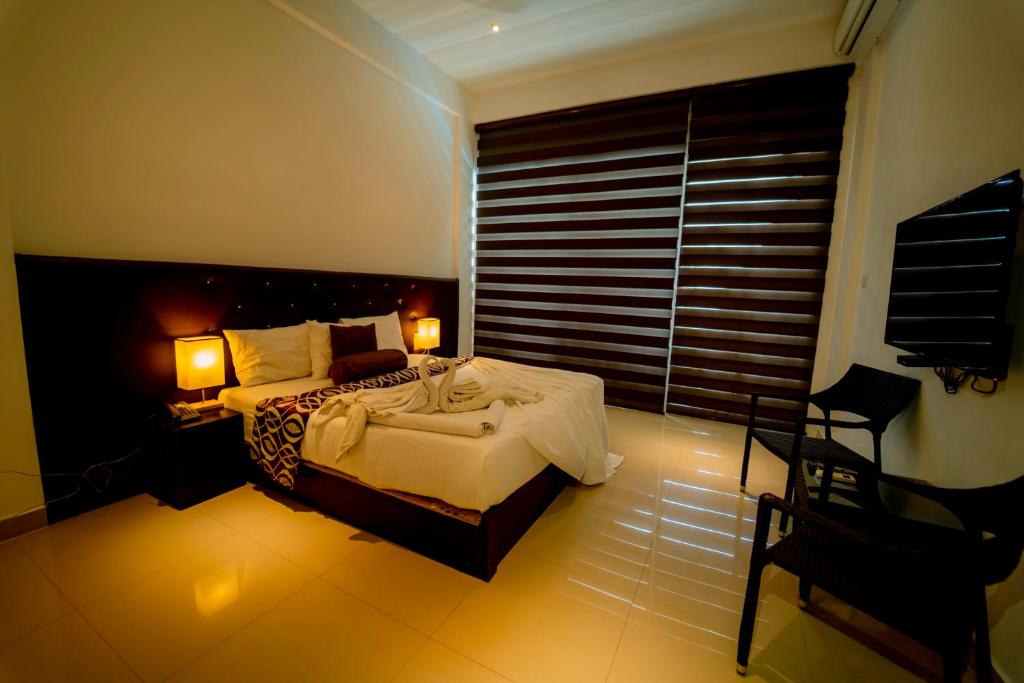 В номерах: кондиционер, телевизор, мини-бар, Wi-Fi, банные принадлежности, фен, халат, шкаф, чайник, набор для приготовления чая/кофе, вентилятор, телефон