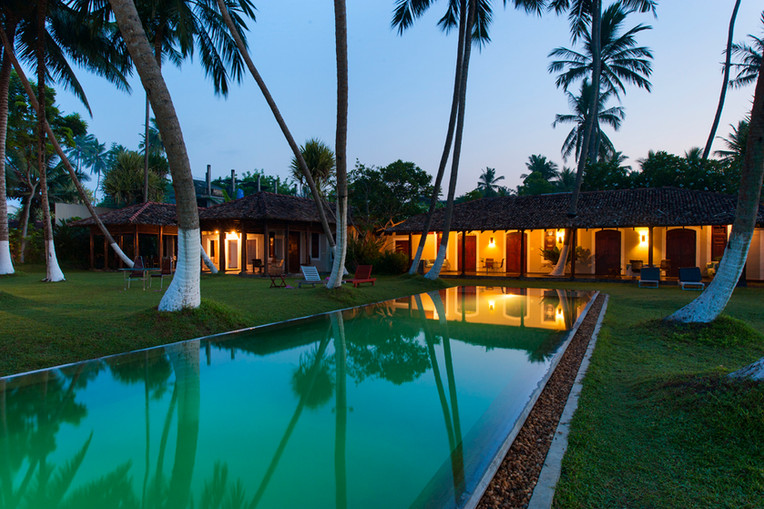 Виллы построены в традиционном стиле Шри-Ланки – с черепичными крышами, деревянными колоннами и уютными внутренними двориками и верандами.