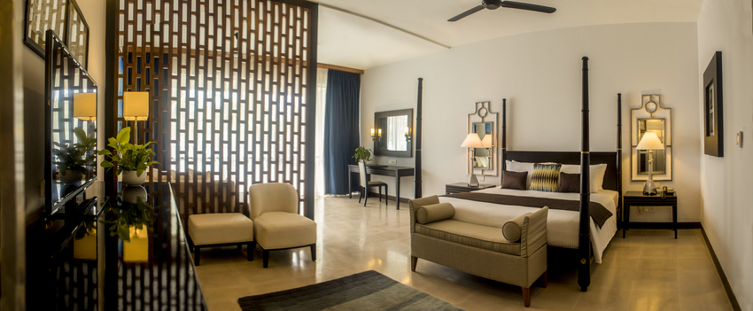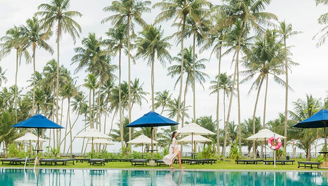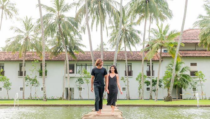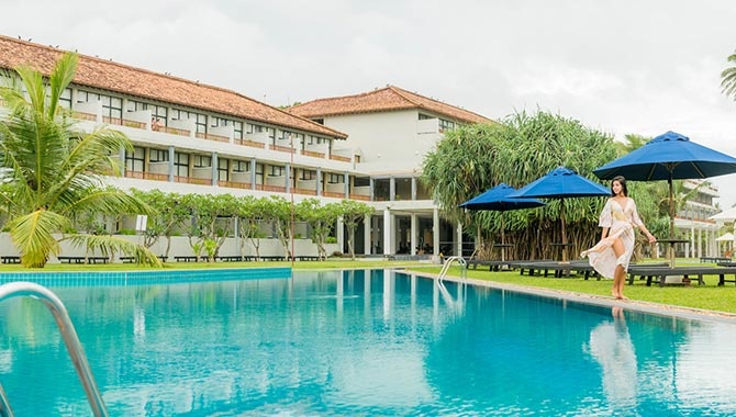 Отель The Blue Water Hotel & Spa спроектирован всемирно известным архитектором Джеффри Бавой. Отель располагает большой, зелёной территорией и состоит из одного здания разной этажности. На территории отеля открытый бассейн, 2 ресторана и несколько баров, спа-центр. Все номера отеля с видом на океан.