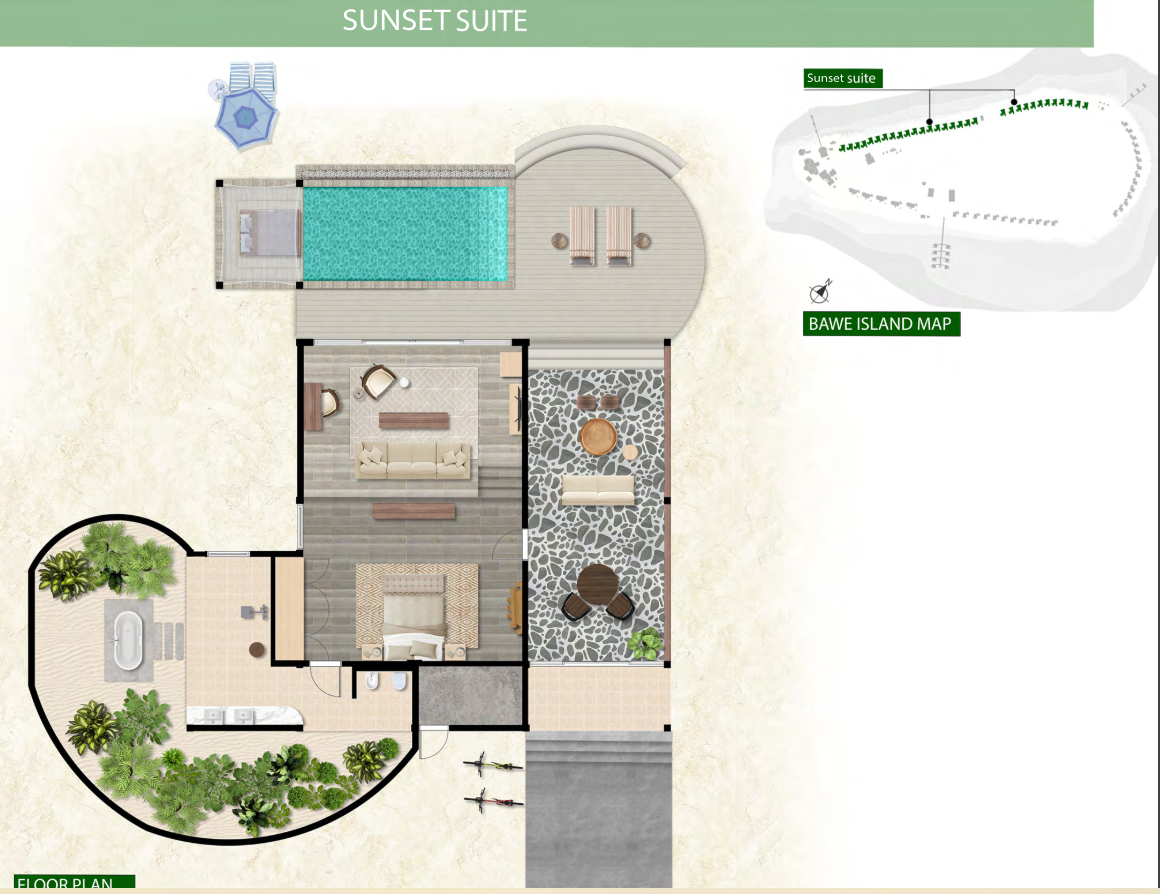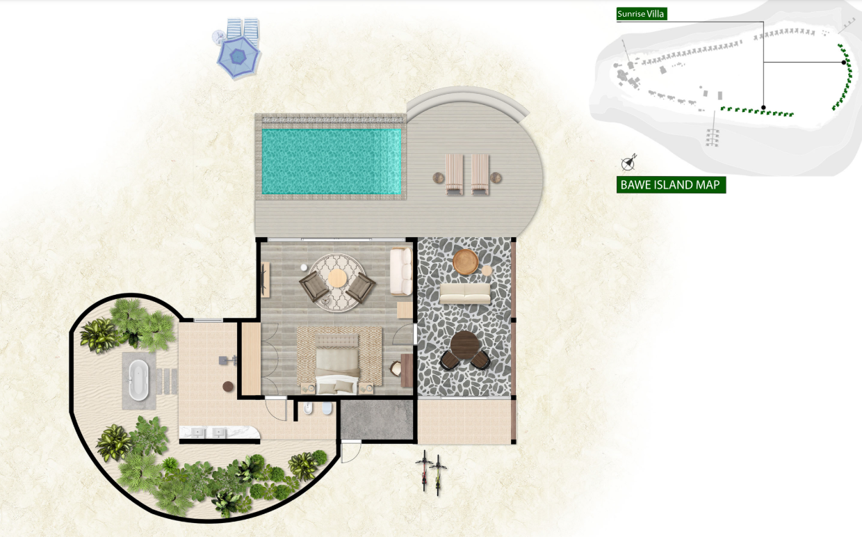 Курорт Bawe Island расположен острове Баве площадью более 30 гектаров, на котором расположено всего 70 эксклюзивных вилл среди пышной и дикой природы, все виллы оснащены частными бассейнами. К услугам гостей открытый бассейн, спа-центр, рестораны, центр водных видов спорта и дайвинга, а также тренажёрный зал.