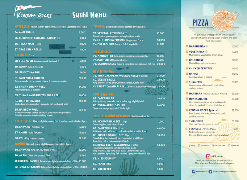 Kendwa Rocks расположен на берегу песчаного пляжа, состоит их двух и трёхэтажных коттеджей. Каждый номер отеля с уникальным дизайном и со своим собственным названием. Отель известен периодически проходящими в нём вечеринками Full Moon Party. На территории отеля открытый бассейн, спа-центр, тренажёрный зал, ночной клуб, ресторан и бары.