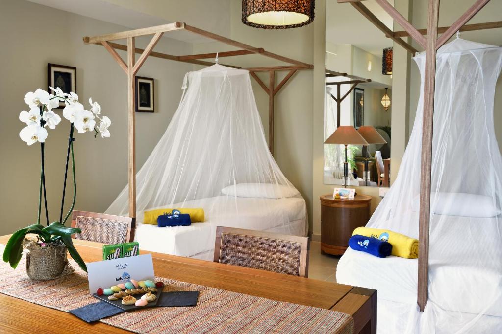 В номерах: Wi-Fi, сейф, кондиционер, потолочный вентилятор, телевизор с международными каналами, мини-бар (ежедневное пополнение: 2 маленькие бутылки воды, 2 маленькие безалкогольные напитки и 2 маленькие бутылки пива), набор для приготовления чая/кофе, халаты и тапочки, москитная сетка, 2 телефона, 2 отдельные раковины, фен, зеркало для макияжа, весы, зонт, банные принадлежности.