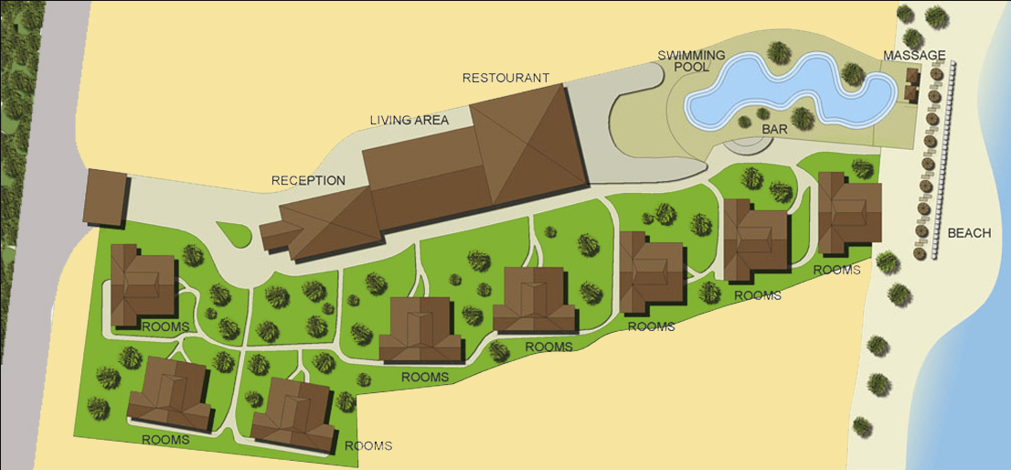 В номерах: противомоскитная сетка, кондиционер, фен, сейф, телевизор (по запросу).