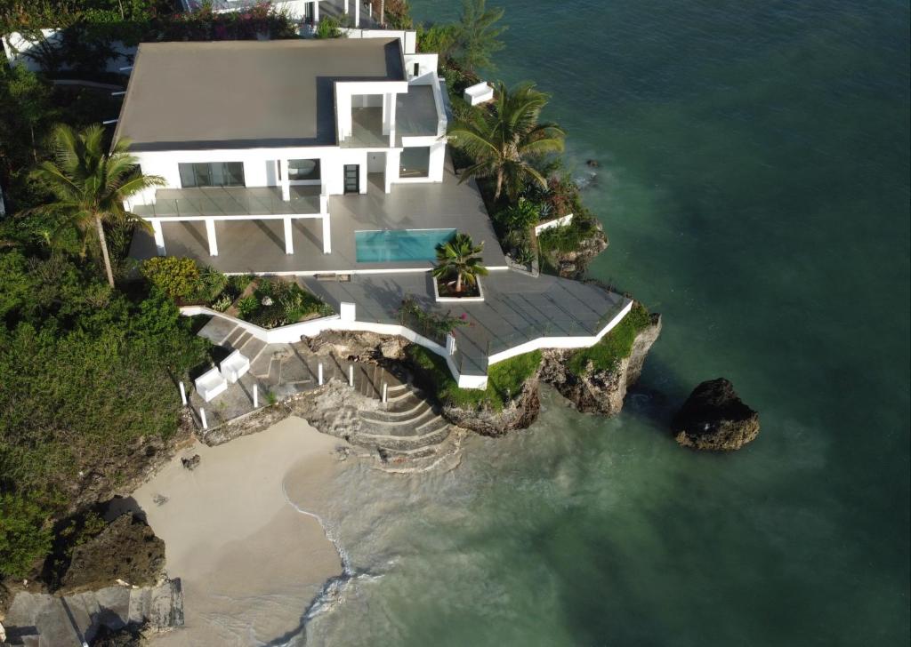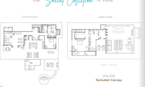 В 70 м от океана, в 150 м от основных бассейнов и пляжа, двухэтажная вилла, спальня с двуспальной кроватью king-size, отдельная гостиная комната, ванная комната с ванной и душем, душ под открытым небом, гардеробная, мини-кухня, гостевая ванная комната, балкон с лежаками и гидромассажной ванной, терраса, частный бассейн, ландшафтный сад и вид на океан, план номера;
