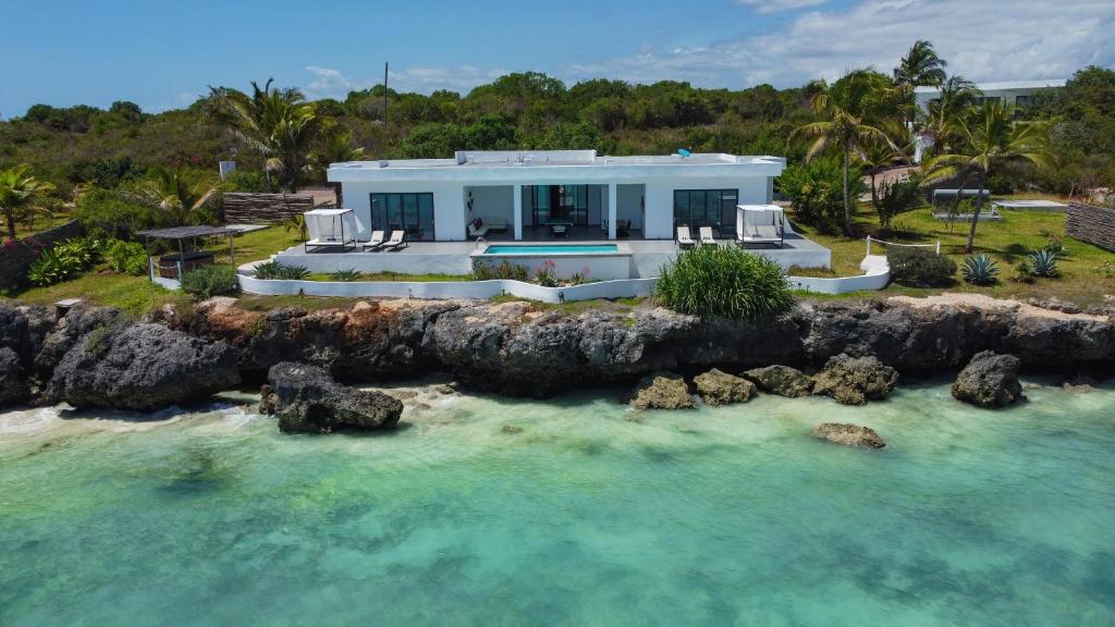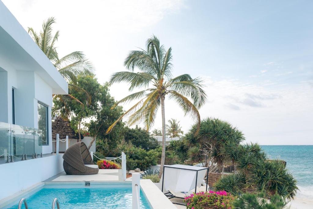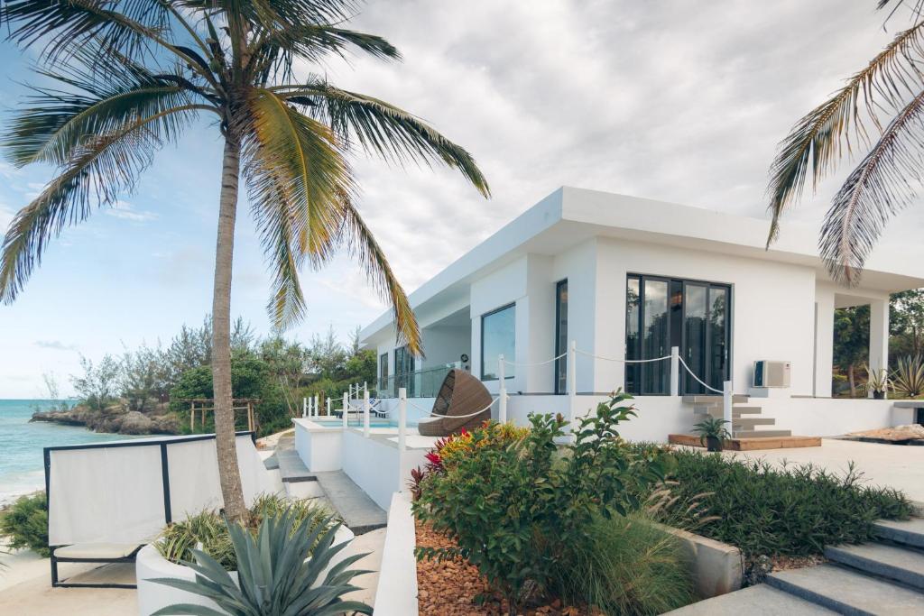Находится в 370 м от основных бассейнов и пляжа, одноэтажная вилла, спальня с двуспальной кроватью king-size, отдельная гостиная комната, мини-кухня, ванная комната с гидромассажной ванной и душем, душ под открытым небом, пирс, качели, терраса, частный бассейн, частный пляж, вид на океан, план номера;