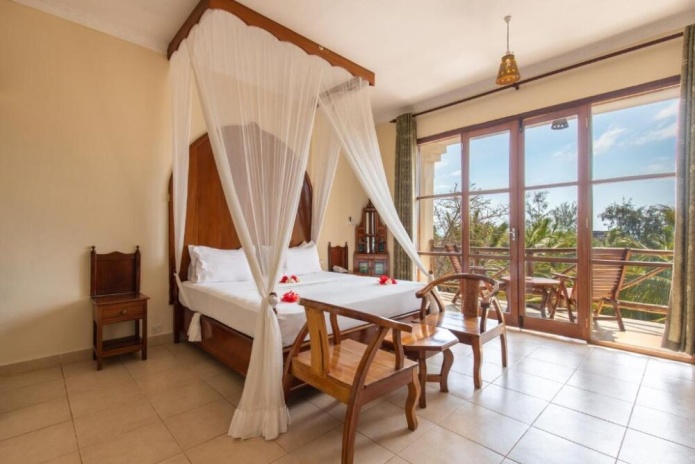 В номерах: кондиционер, потолочный вентилятор, мини-холодильник, бутилированная питьевая вода, телефон, сейф, фен, банные принадлежности.