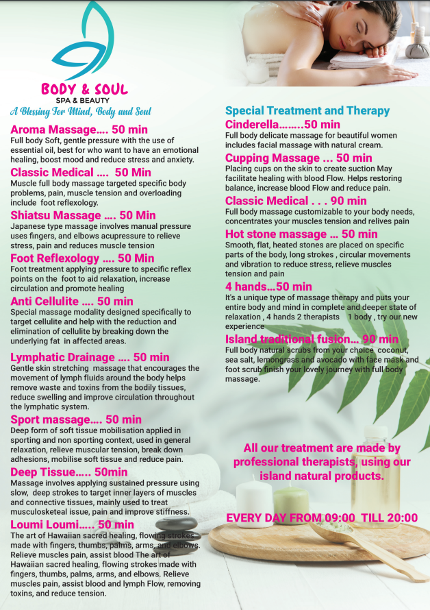 Спа-центр, часы работы: 09:00-20:00, см.меню:
