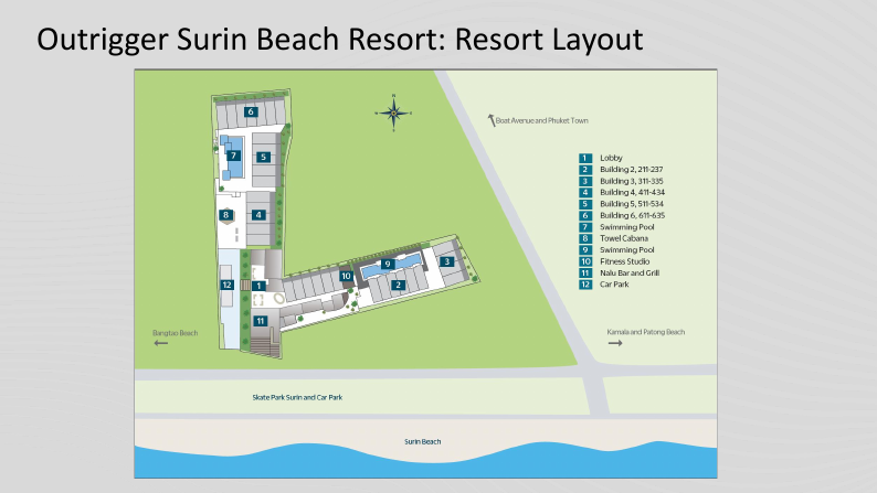 Небольшой уютный бутик-отель Outrigger Surin Beach Resort расположен на пляже Сурин, одного из самых популярных пляжей Пхукета, и состоит из 2 корпусов по 3-4 этажа. К услугам гостей – современные номера, бассейн, фитнес-зал, массажный-салон и ресторан-бар Налу, который оформлен в современном стиле с элементами полинезийского дизайна и атрибутикой серфинга..