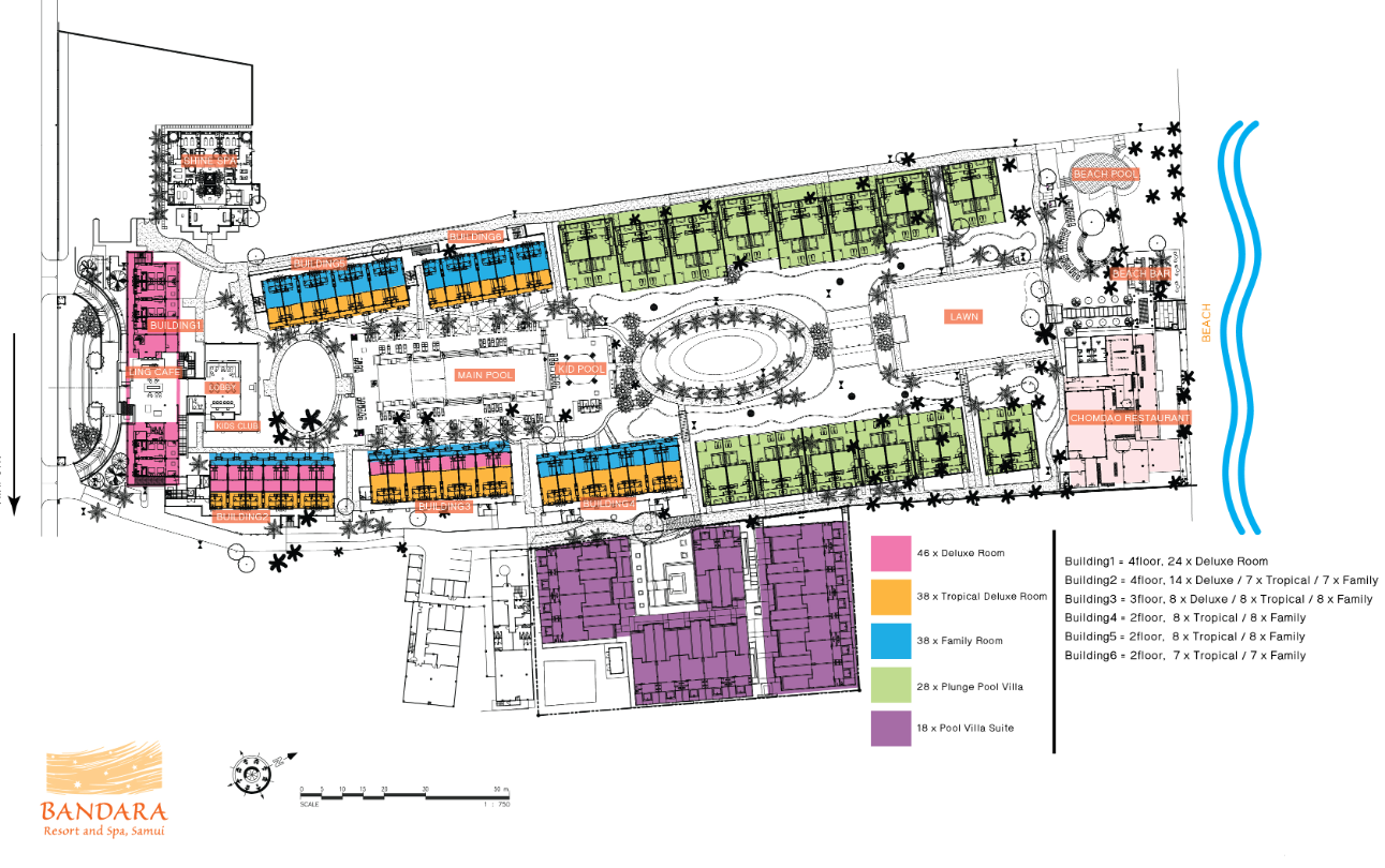 Bandara Resort & Spa Samui расположен на пляже Бопхут, в пешей доступности от ночного рынка и ресторанов рыбацкой деревни. В отеле 6 корпусов (2-4 этажа) и вилл, которые расположены в блоках отдельно от корпусов. На территории отеля несколько бассейнов, спа-центр, детский клуб.