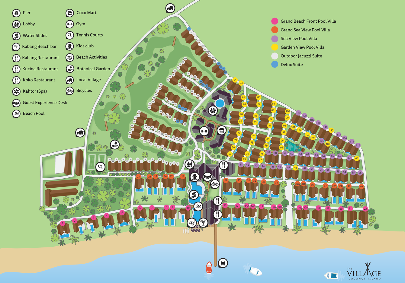 Курорт предлагает 204 просторных номера различных категорий, включая роскошные сьюты на берегу моря и великолепные виллы с бассейном. Большим семьям и группам подойдут два дома с несколькими комнатами, которые обеспечивают идеальный баланс пространства для общения и уединения.