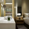 В номерах: Wi-Fi, IPTV телевидение, мини-бар, набор для приготовления чая/кофе, кондиционер, сейф, телефон, халат и тапочки.