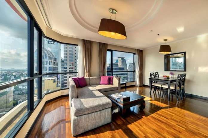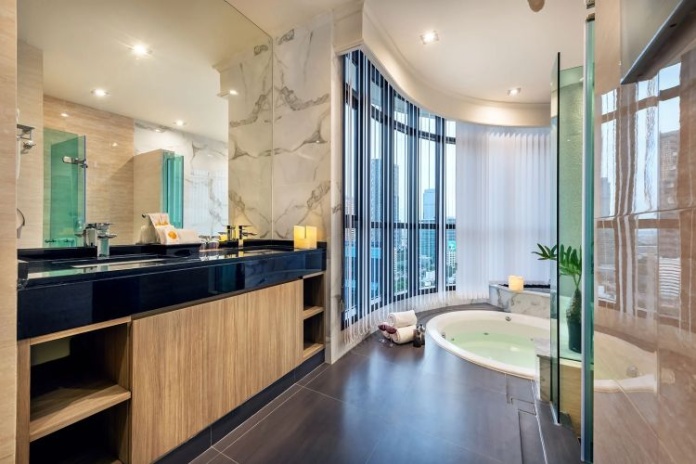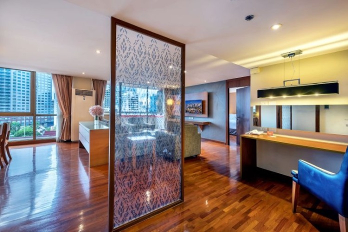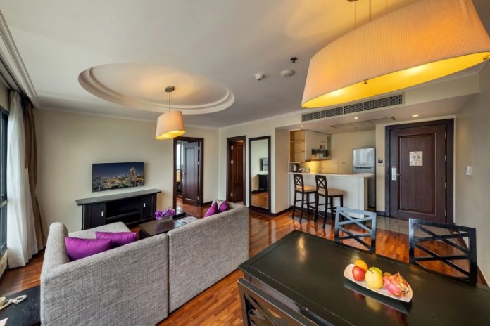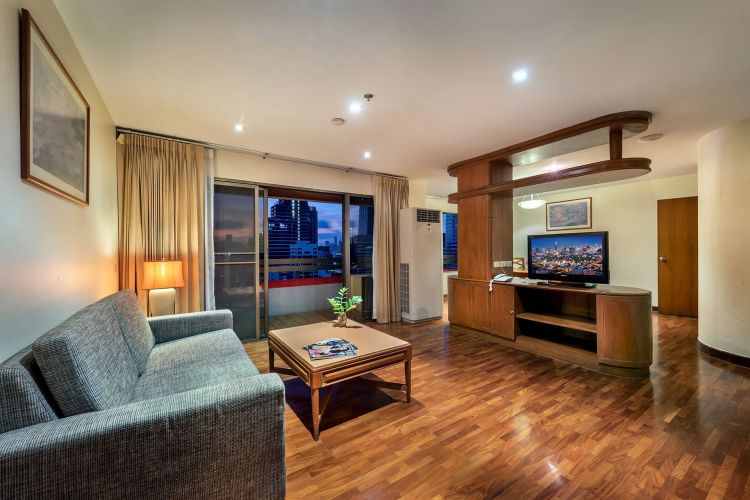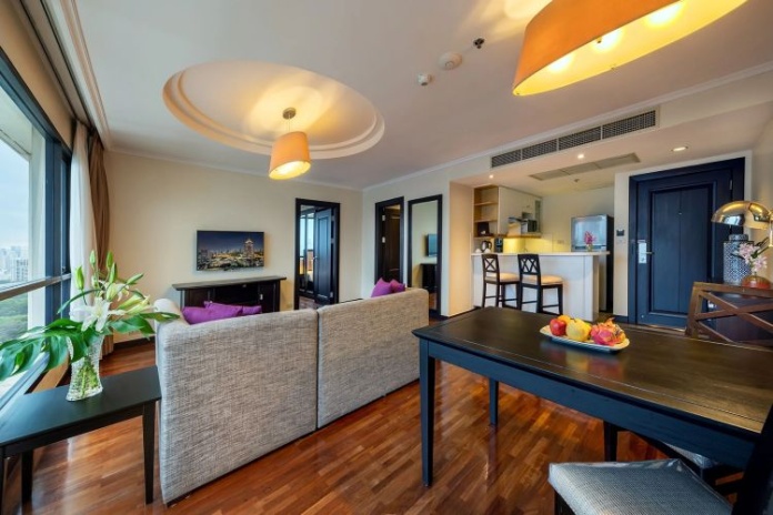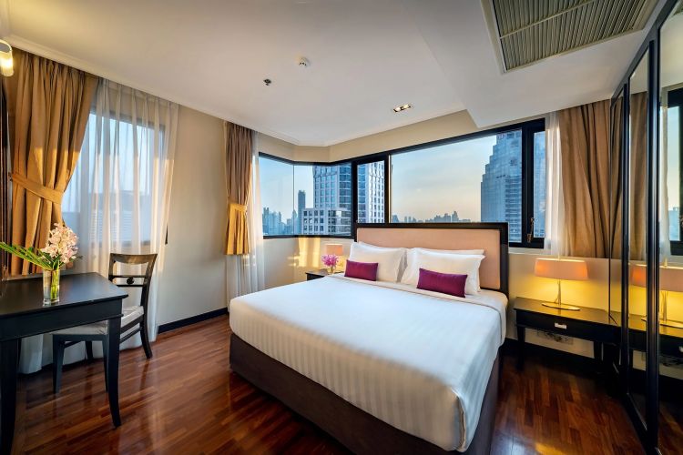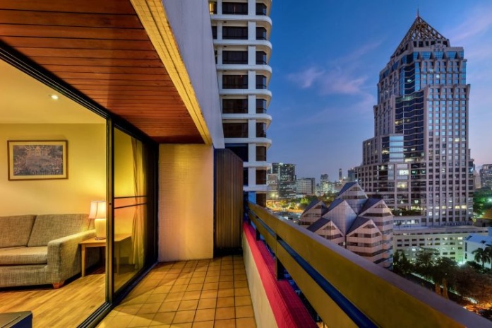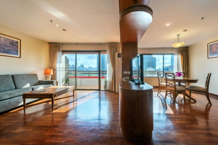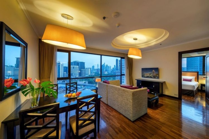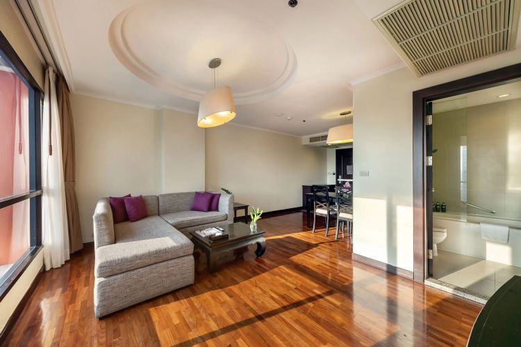 Номера расположены на 23-26 этажах, спальня с двуспальной кроватью king-size или 2 односпальными кровати, отдельная гостиная комната с диваном, обеденным столом и небольшой кухней, ванная комната с ванной, вид на город и парк Lumpini, кофемашина;