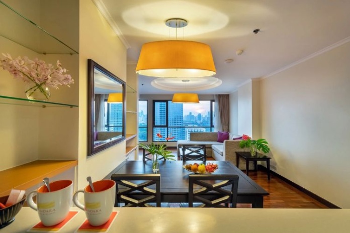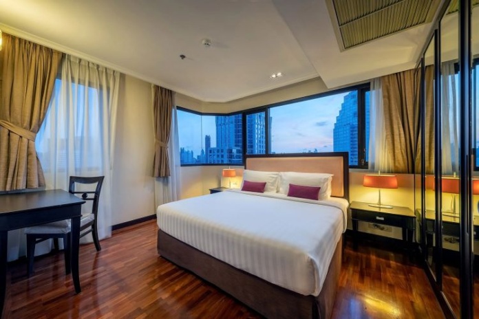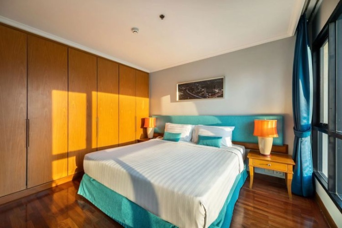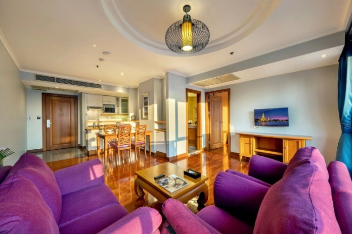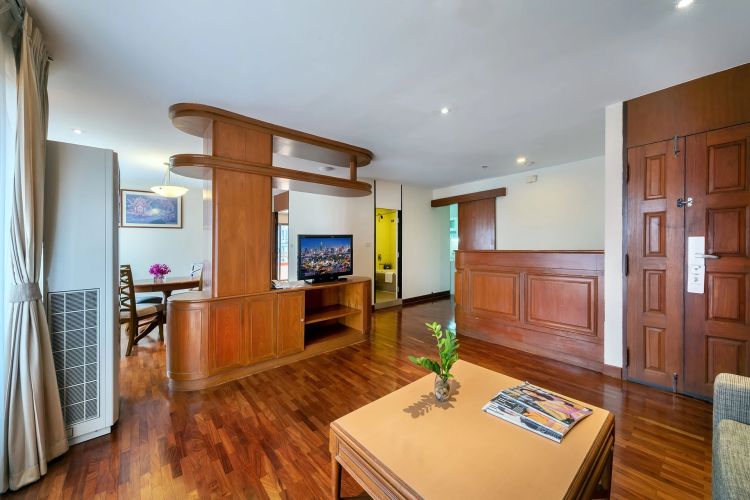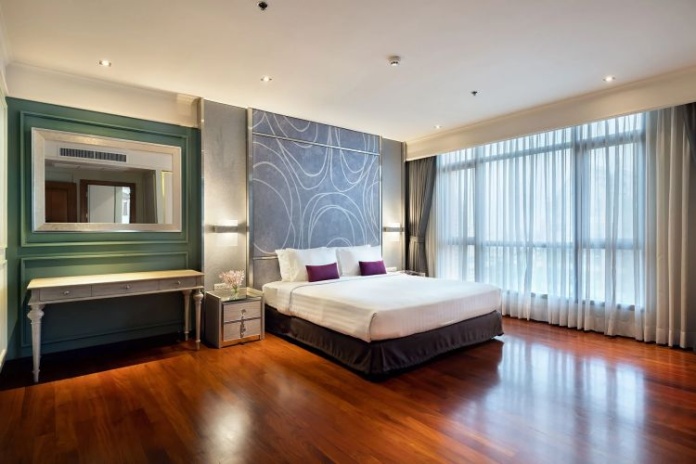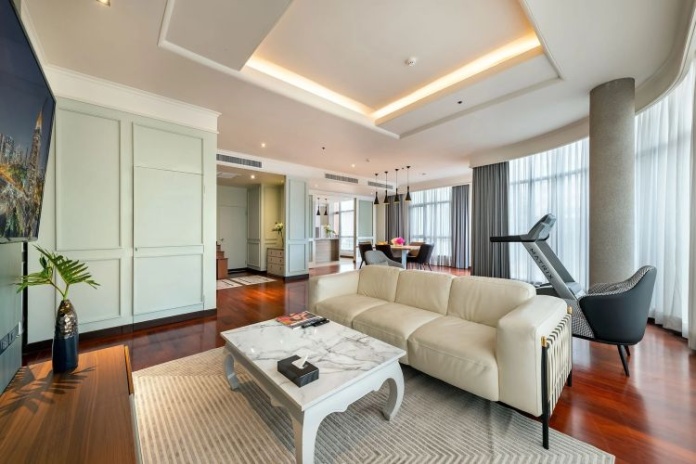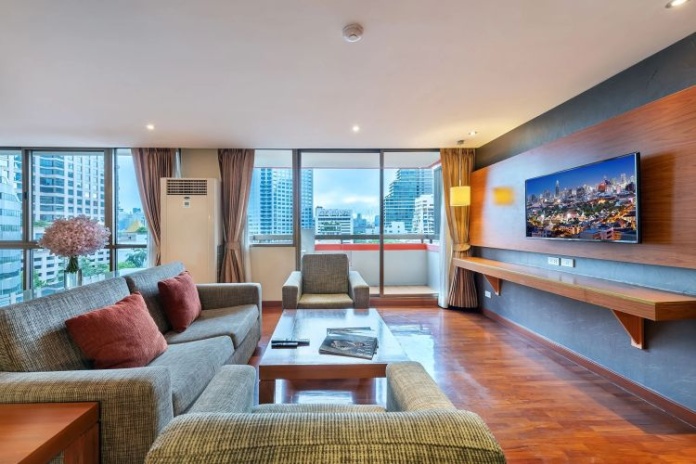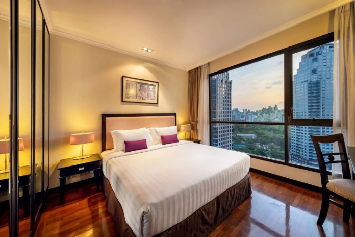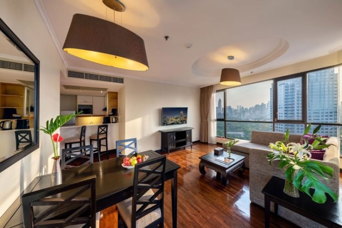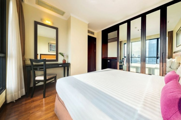 Номера расположены на 23-26 этажах, спальня с двуспальной кроватью king-size или 2 односпальными кровати, отдельная гостиная комната с диваном, обеденным столом и небольшой кухней, ванная комната с ванной, вид на город и парк Lumpini, кофемашина;