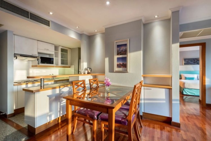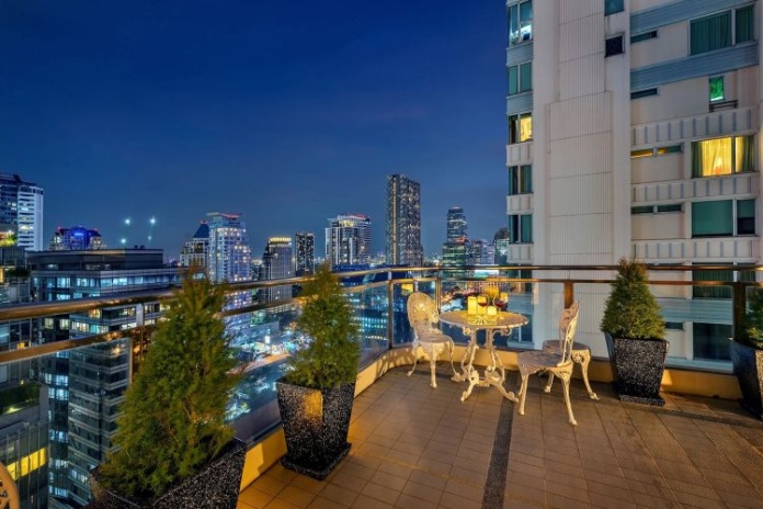 Двухуровневый номер с видом на Бангкок, 3 спальни: 2 двуспальные кровати king-size и 2 односпальные кровати, 4 ванные комнаты, просторная гостиная комната с диваном, обеденным столом, кухня, балкон;