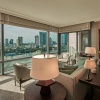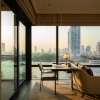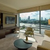 Номера расположены с 4 по 10 этажи, окна от пола до потолка, спальня с кроватью king-size, отдельная гостиная комната с диваном и обеденной зоной, ванная комната с ванной и душем, гостевой туалет, гардеробная, меблированный балкон, вид на реку, план номера;