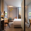 Стильный современный номер c1 двуспальной кроватью или 2 односпальными кроватями, отдельная ванная комната с душем, гостиный уголок - столик, кресло и небольшая кушетка, вид на соседние здания, есть смежные номера;