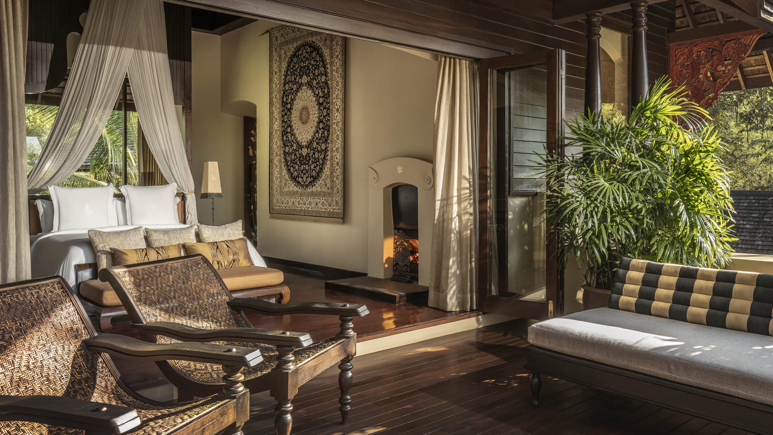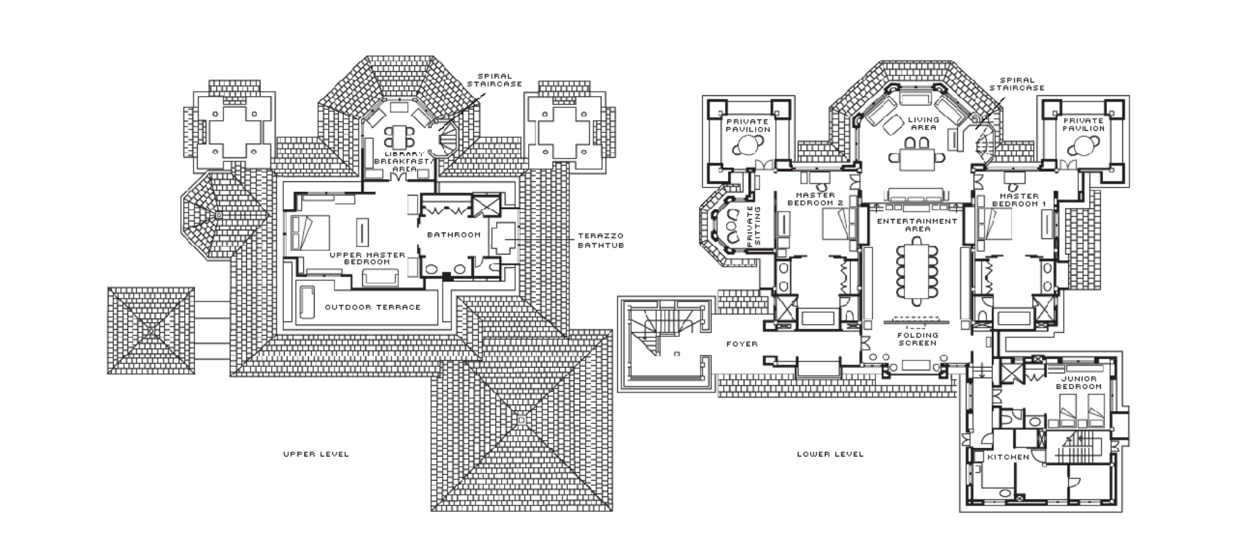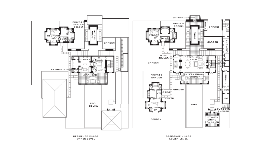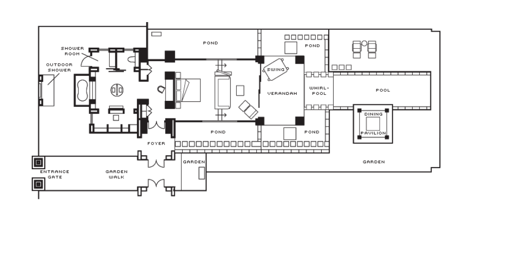 Двухуровневые здания с отдельным входом, окруженные пышными садами в восточной части курорта, 4 спальни: 3 двуспальные кровати king-size и 2 односпальные кровати, просторная столовая на 8 мест и гостиная комната, а также кухня и винная комната 4 ванные комнаты, гостевой туалет, душ под открытым небом, персональный бассейн (6 х 17 м), джакузи (3,2 х 3,2 м), парковка на 2 автомобиля, панорамный вид на горы и сад, услуги батлера, дополнительно: приветственный коктейль или моктейль, ежедневно пополняемый мини-бар (без алкоголя), детские принадлежности, глажка до четырех предметов одежды на номер, на 30 минут больше продолжительность на все процедуры в спа, см.план номера.