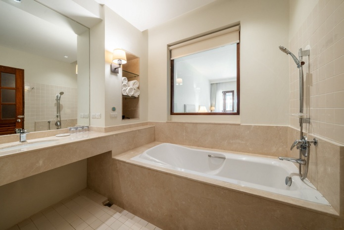 В номерах: кондиционер, банные принадлежности, мини-холодильник, телевизор, телефон, тапочки, халат, письменный стол, фен, сейф, набор для приготовления чая/кофе, зонт, бесплатно 1 бутылка воды.