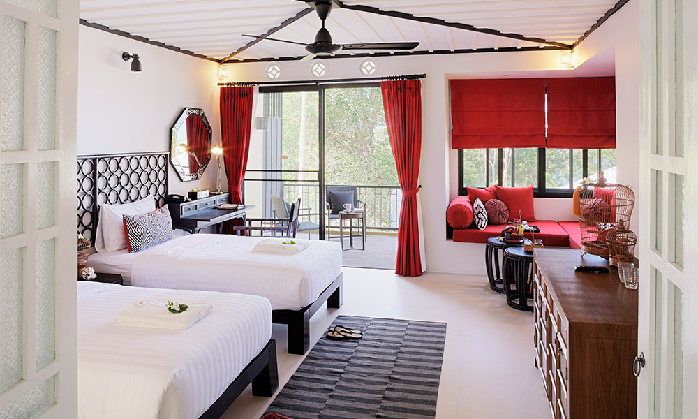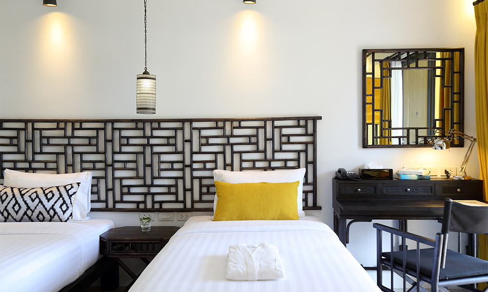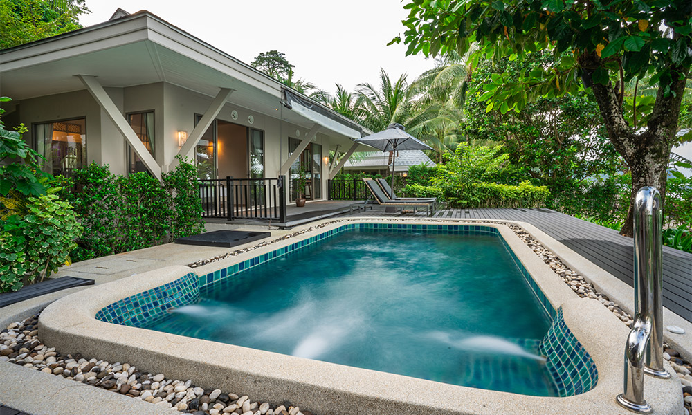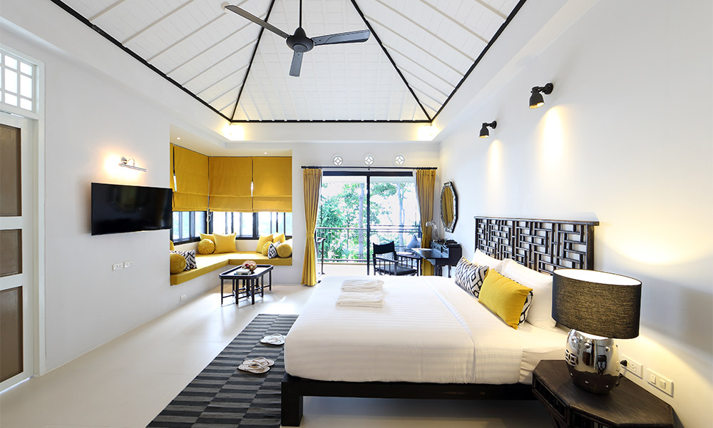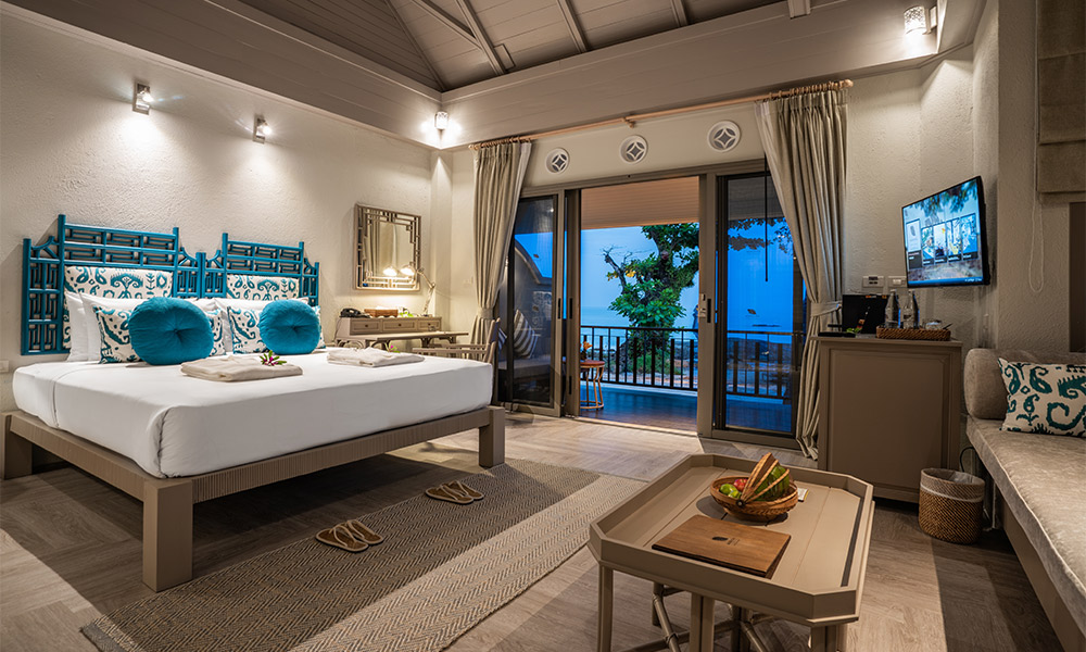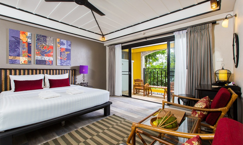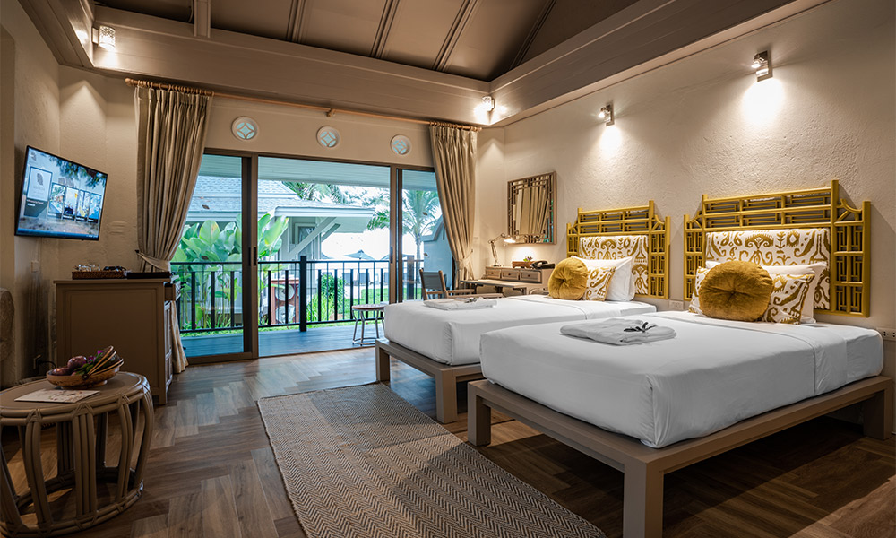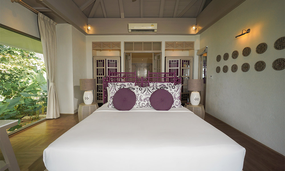 Номера оформлены в тёплом тайском стиле и окружены зеленью. Варианты размещения включают как стандартные комнаты, так и бунгало и виллы с частными бассейнами. Во всех номерах есть балкон или терраса, откуда открываются виды на сад, бассейн или море.