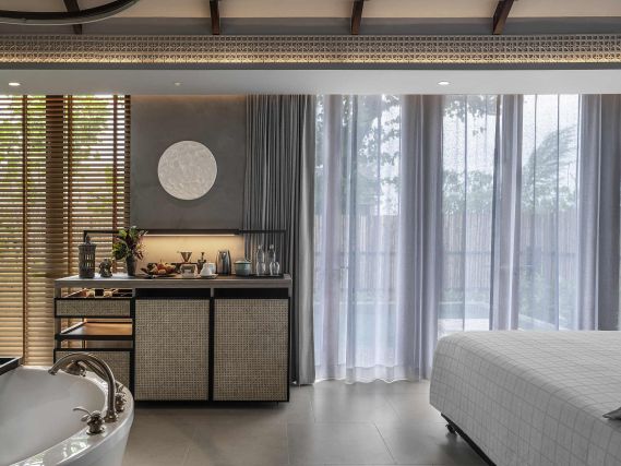 Архитектура курорта вдохновлена китайско-португальским наследием региона. Использование местных материалов ручной работы подчёркивает историю этого места.
