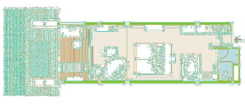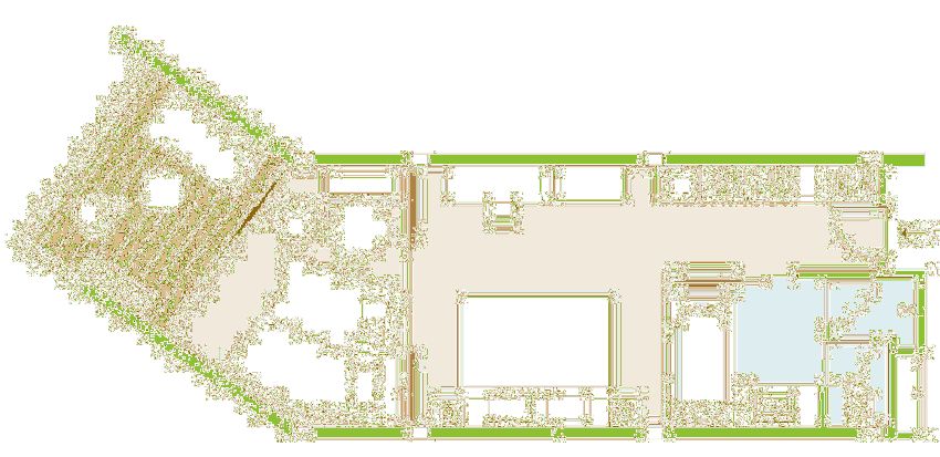 2 спальные зоны (с раздвижной дверью между ними): двуспальная кровать king-size и раскладная кровать для 2 детей, ванная комната с ванной и душем, терраса, небольшой персональный бассейн в нескольких шагах от основного бассейна курорта, план номера.