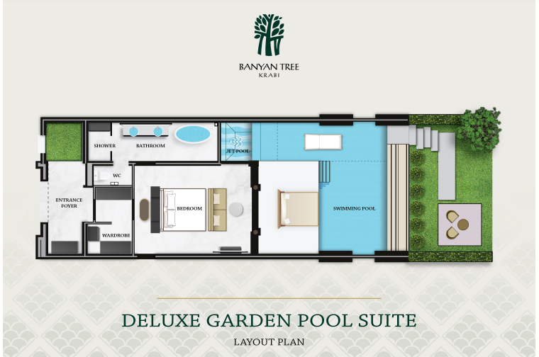 - 11 номеров Deluxe Garden Pool Suite (125 м² с террасой, бассейном и садом, макс. 2+1).