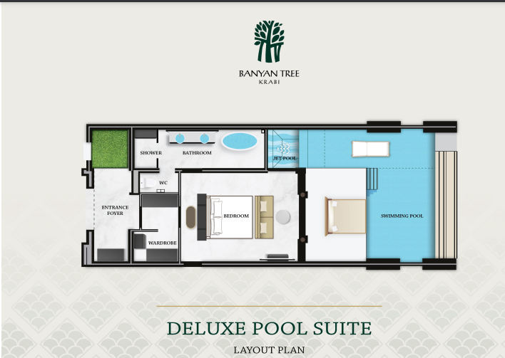 - 5 номеров Deluxe Pool Suite (99 м² с террасой и бассейном, макс.2+1).