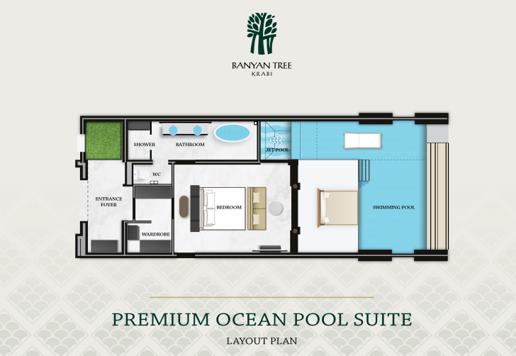 - 21 номер Premium Ocean Pool Suite (99 м² с террасой и бассейном, макс. 2+1).