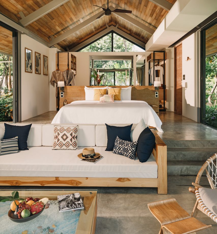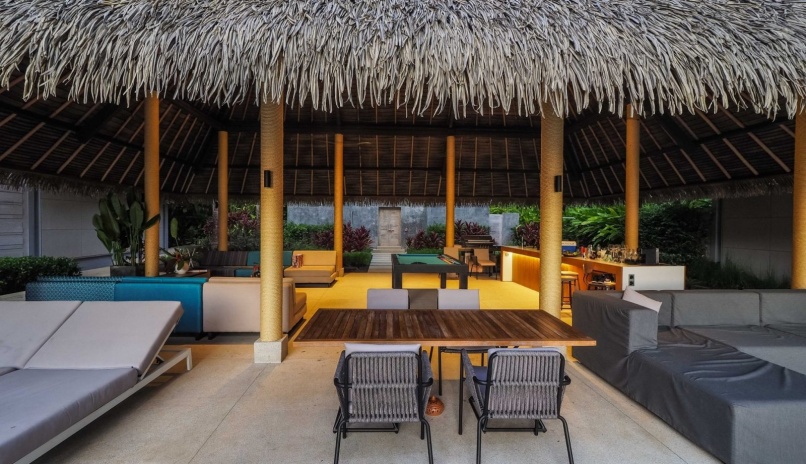 В зоне Ocean, 4 спальни (двуспальные и односпальные кровати), 4 ванные комнаты, отдельная гостиная комната с диваном, обеденным столом, бильярдным столом, матрасы высочайшего комфорта и выбор подушек, кухонная зона, услуги личного шеф-повара (по запросу), терраса с лежаками, обеденным столом и гамаком, персональный бассейн, беседка, планшет для управления удобствами номера, вид на океан.