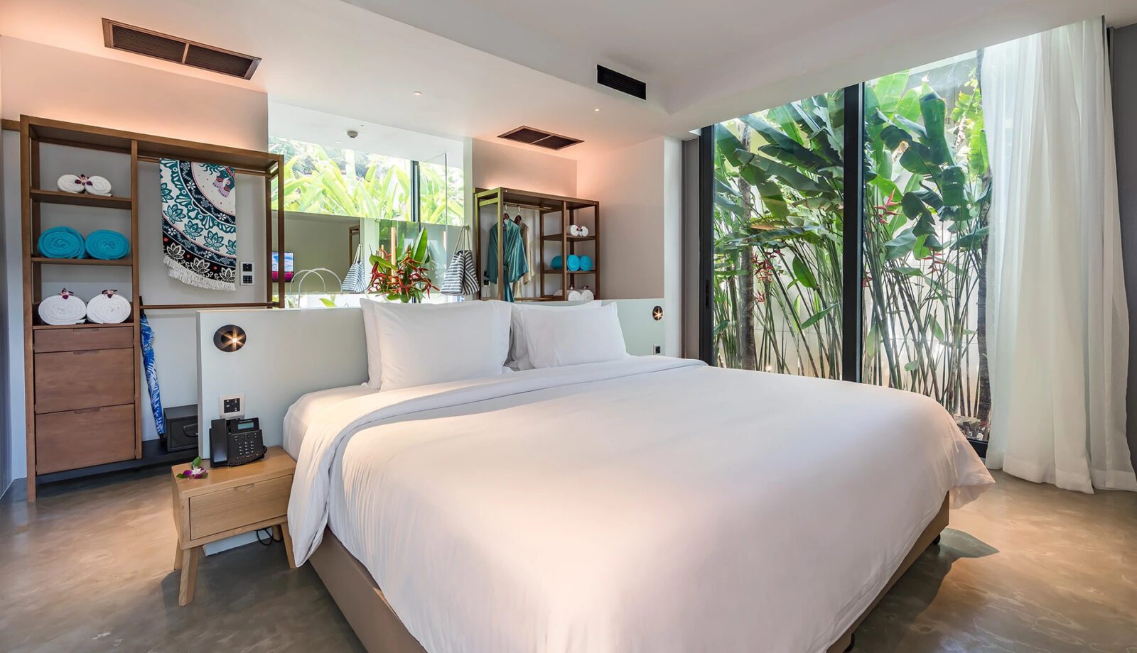- 36 номеров Deluxe Pool Access (35 м², макс. 2 чел.).