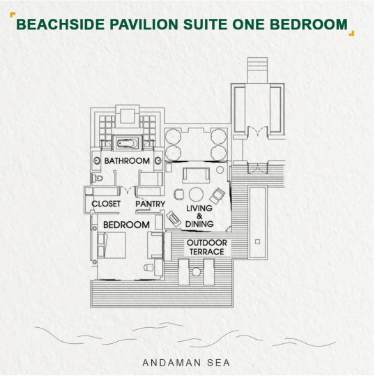 - 2 номера 1 Bedroom Beachside Pavilion Suite (110 м², макс. 3 чел.).