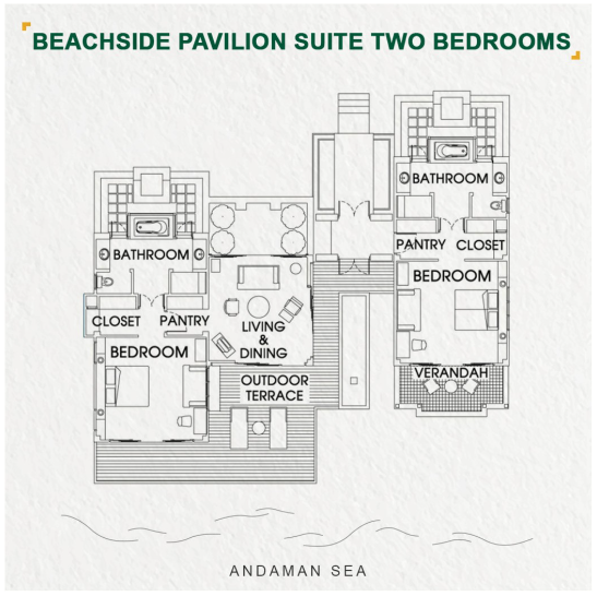 - 2 номера 2 Bedroom Beachside Pavilion Suite (160 м², макс. 6 чел.).